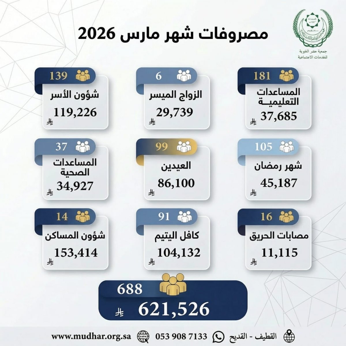 بـ أكثر من 600 ألف ريال شهر مارس ينهي مصروفاته على الأسر المستفيدة بجمعية مضر الخيرية