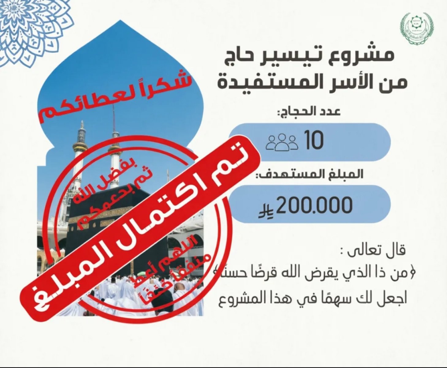 المشاركة بمشروع "كفالة حاج" سموٌ للنفس وطهارة للروح