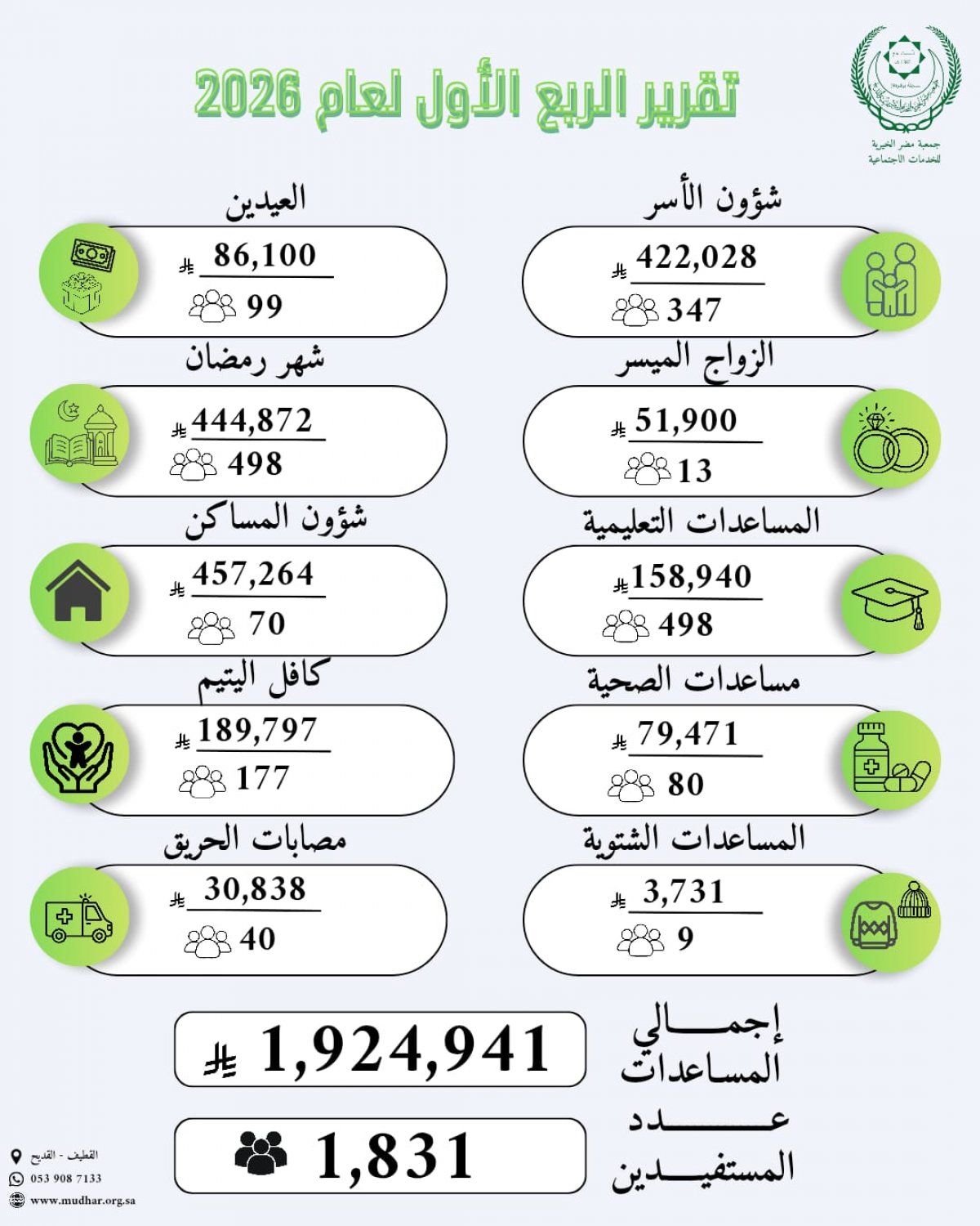 بما يقارب مليوني ريال ختم الربع الاول من العام 2026 مصروفاته بخيرية مضر