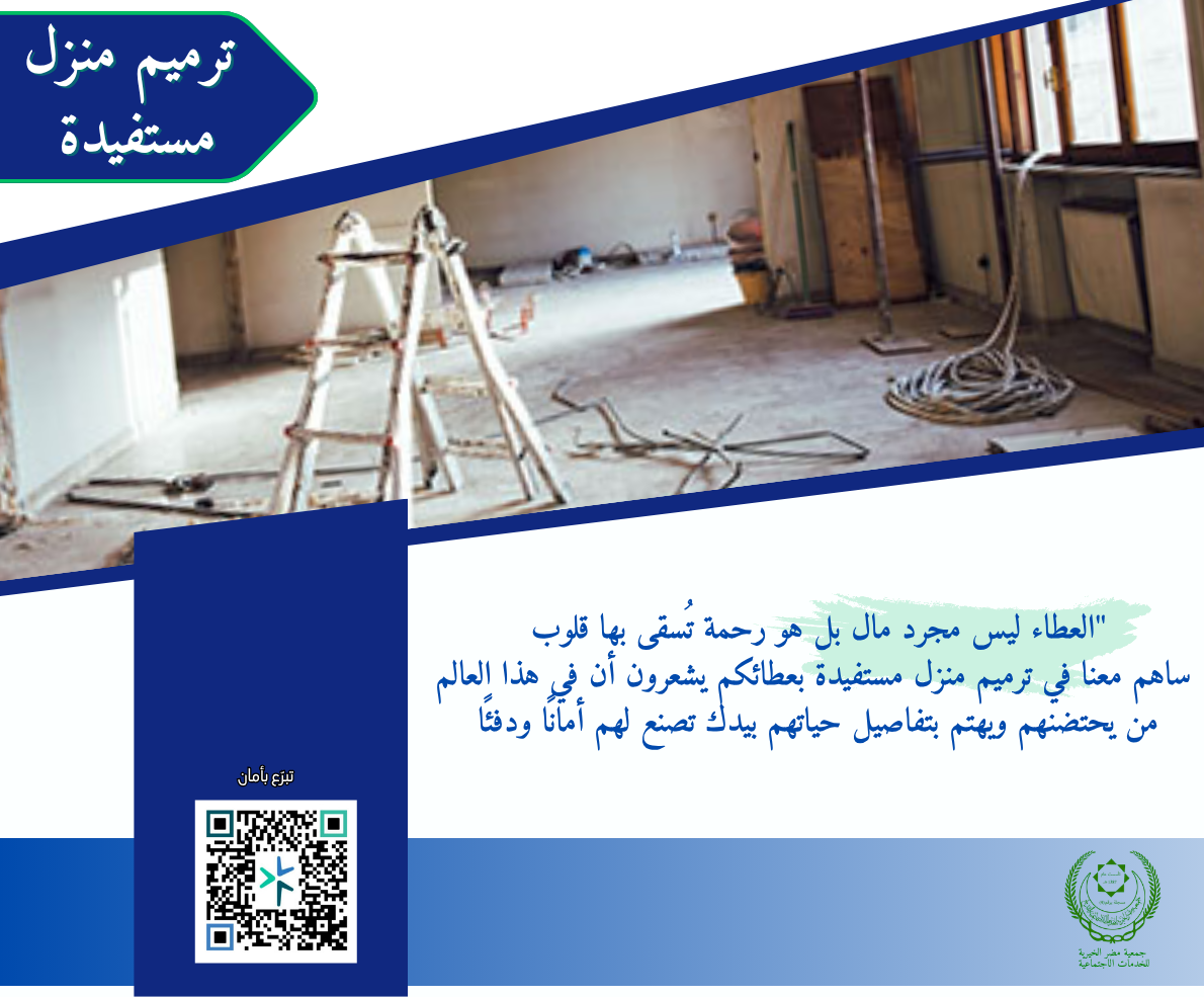 "كُن ممن يعمر بيتاً ويفرج كرباً، بعطائك نحقق حلمهم ونأمن مسكنهم."