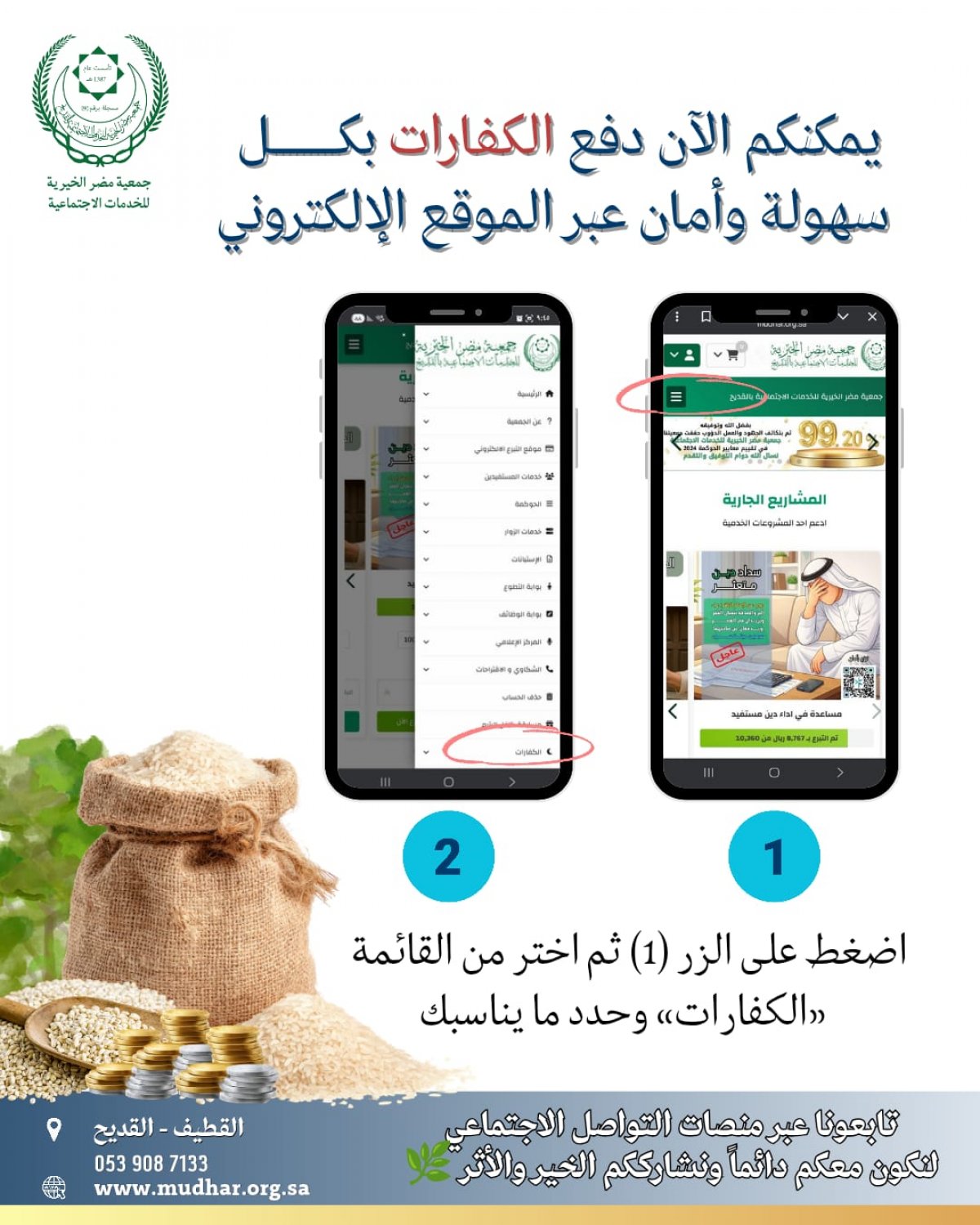 جمعية مضر الخيرية تتيح دفع "الكفارات" إلكترونياً